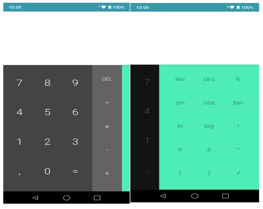 In the interface of calculator, hold down the screen to the right, then the senior panel appears.