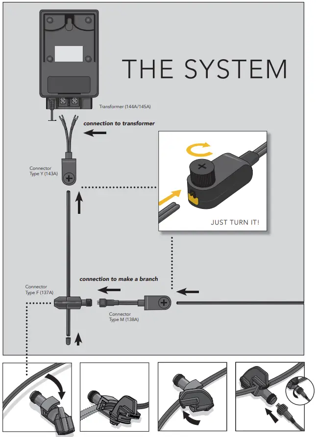 - Install the products in the desired position and lay the cables so they can be comfortably connected to the transformer or main cable.
