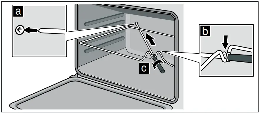 - Place the joint as centrally as possible on the rotary spit and secure it at both ends with the retaining clips.