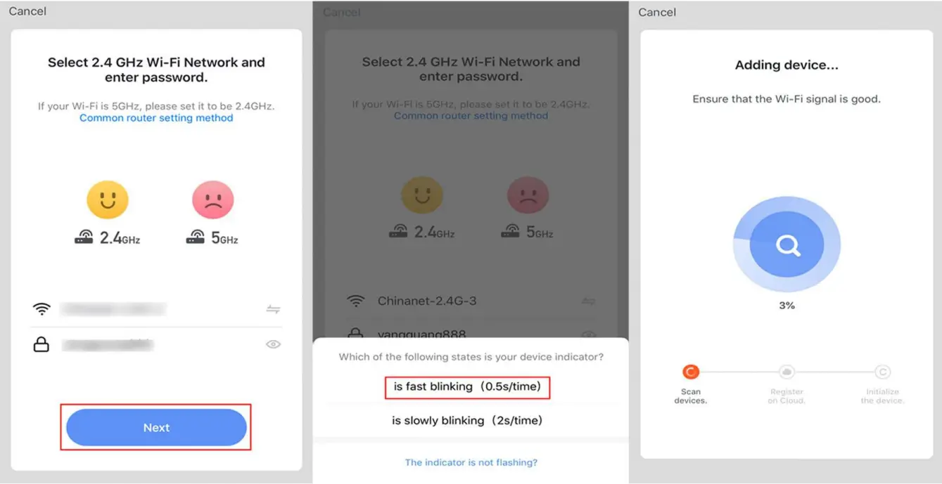 | If the bulb does not flash rapidly, power it off and on 3 times |