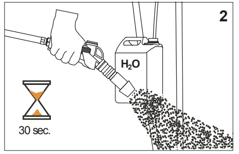 - Apply foam, rinse water, or sanitizer.