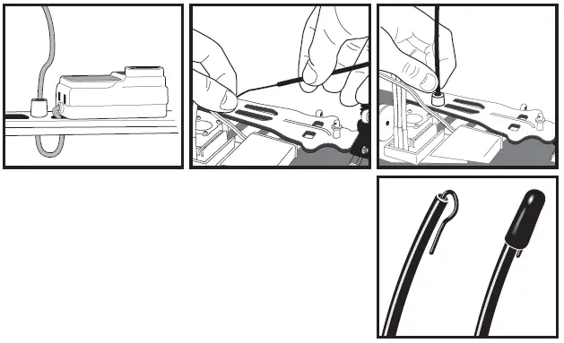 Uncoil the aerial wire carefully so as not to kink or knot it in anyway , and first be sur e to insert the wire up through the top chassis aerial mount hole fr om below. Pull the rubber tube cap off the aerial tube and push the wir e all the way thr ough the aerial tube until the first 5mm of wir e shows out of the other end. Fold the wir e down over the end of the tube and be sur e to insert the rubber tube cap so that it traps the protruding wire to hold it firmly in the tube. Push Aerial tube into mounting hole in upper chassis until firmly seated. Bundle any excess aerial wir e neatly away from rotating components on the chassis.