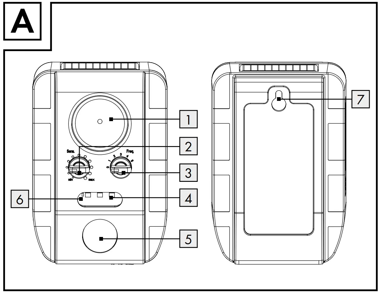 The product registers the movement of animals that move in the detection range of the motion sensor. As soon as an animal is registered, the product produces high frequency tones, which are uncomfortable for animals. As different animals can have different hearing ranges, the frequency of the signal can be adjusted. Nocturnal animals can also trigger an automatic flashing light. To be able to repel lots of different animals, you can adjust the settings to combine any of the signal frequencies with the flashing light.