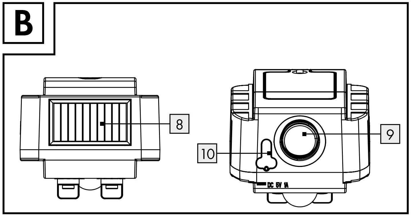 ![]() | Motion sensor: Range: approx. 8m Detection angle: approx. 110° |