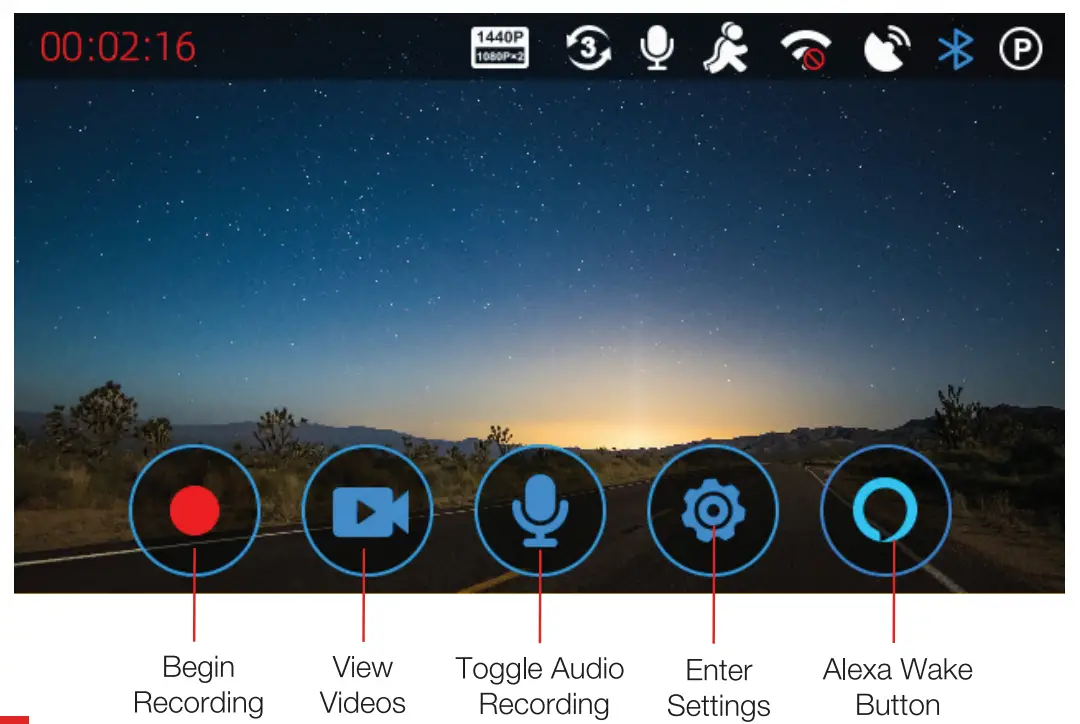 | “Record Video” | Begins loop-recording |
