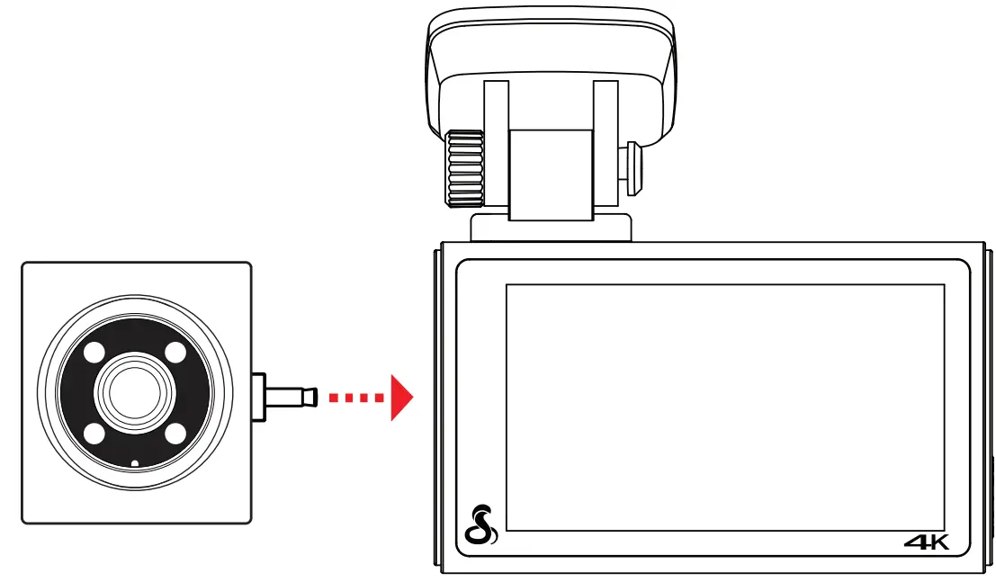 - Connect extension cable to the video input port on the dash cam