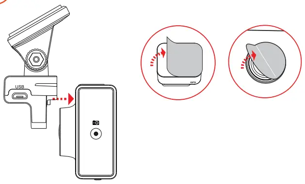 - Attach the GPS mount to the main camera and remove the protective film from the mount and camera lens