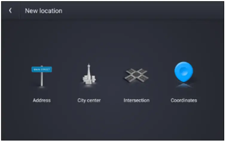 - You can also route to a new location by City center, Intersection, Coordinates, or choose Address > Postal Code.