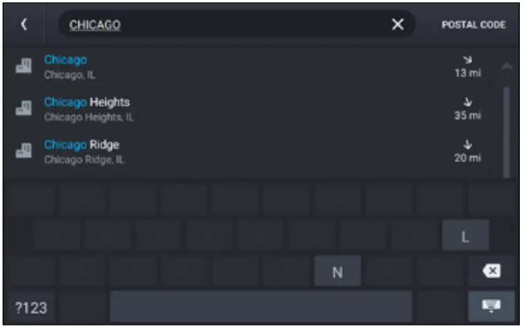 - Enter the name of the city. (Note: As you type, the keyboard only displays the next possible letter.)