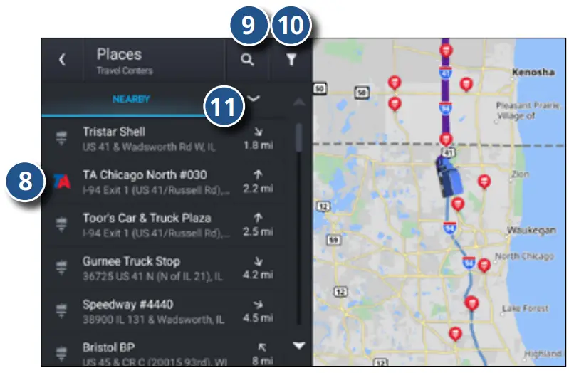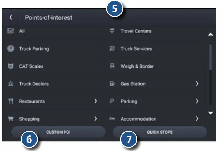 ❼ Find popular truck-friendly POIs.