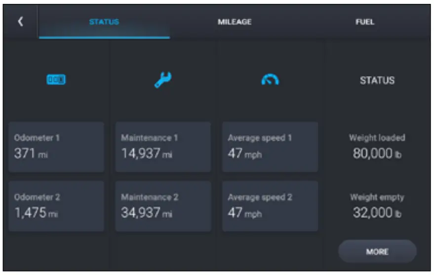 - Tap Truck Tools > Status, Mileage & Fuel.