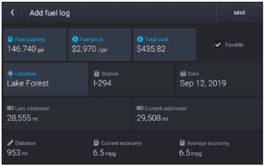 - Tap Add Fuel to record the date, location and cost of fuel purchase.