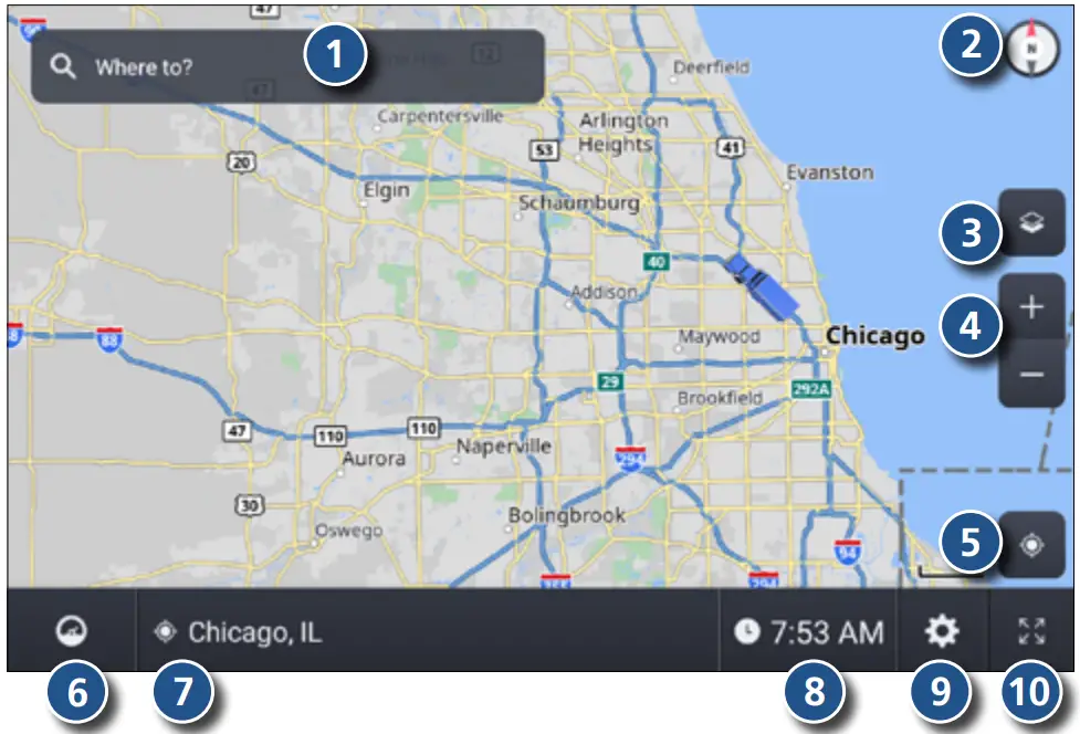 ❹ Cross reference to printed Rand McNally Motor Carriers’ Road Atlas.