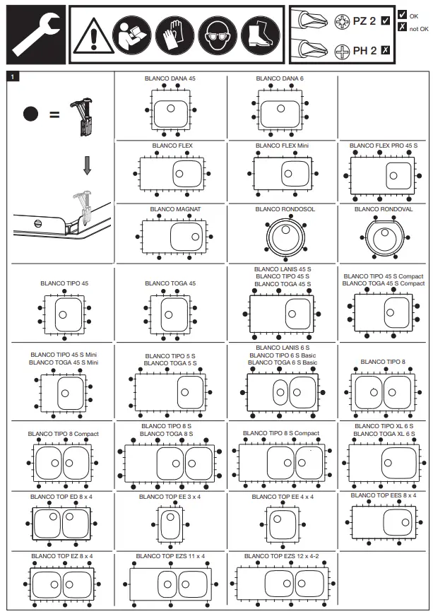 | BLANCO TIPO 6 S Basic | 932 mm | 482 mm | +9 mm |