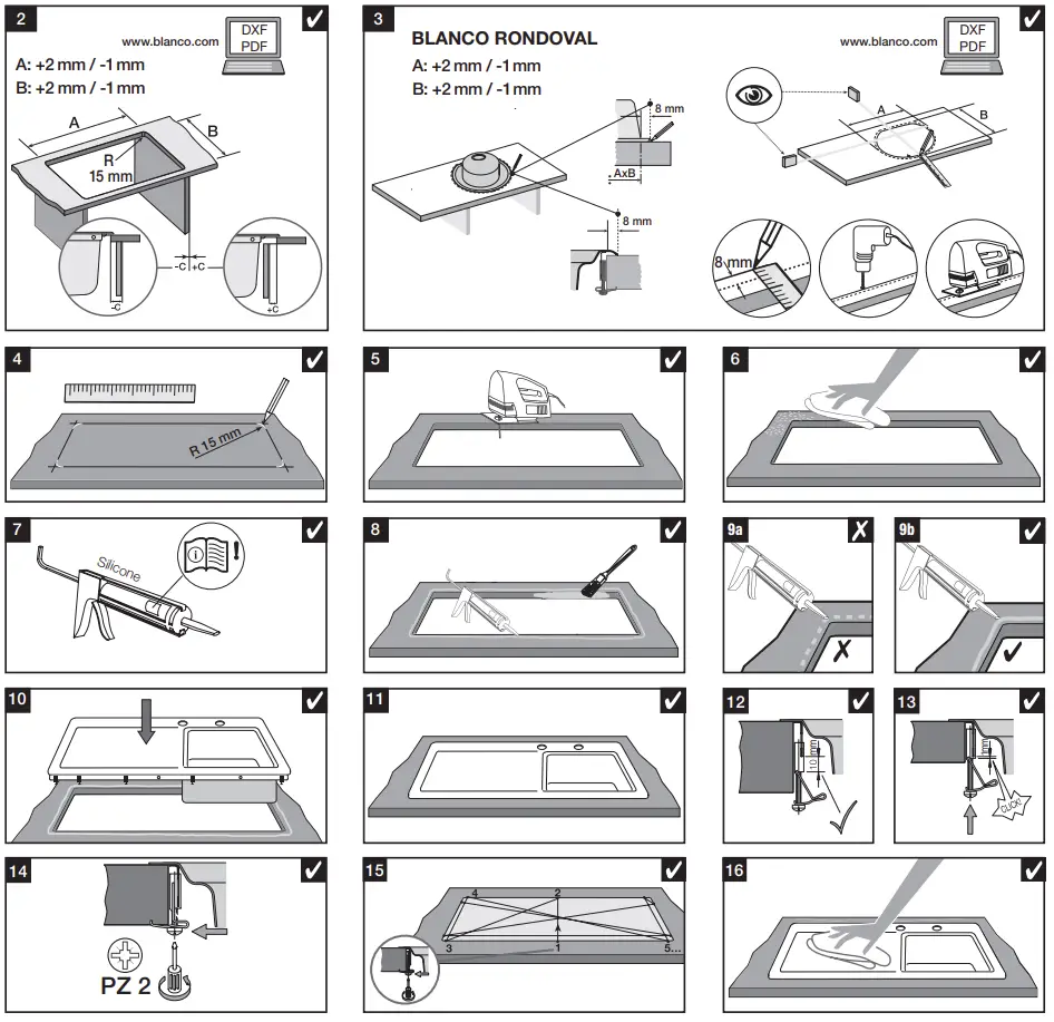 | BLANCO TOP EES 8 x 4 | 842 mm | 417 mm | -4 mm |