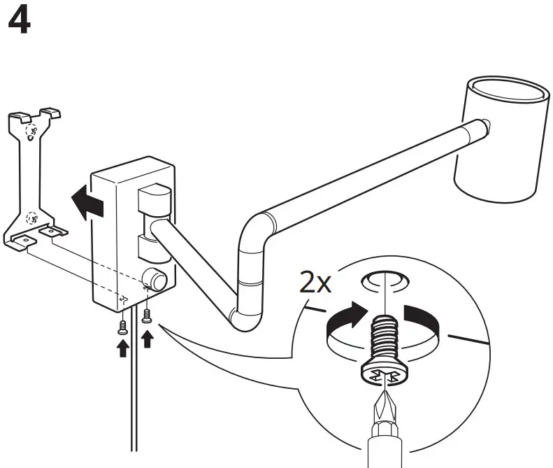 If the external flexible cable or cord of this luminaire is damaged, it shall be exclusively replaced by the manufacturer or his service agent or a similar qualified person in order to avoid a hazard. If you are uncertain, please contact IKEA. Different materials require different types of fittings. Always choose screws and plugs that are specially suited to the material.