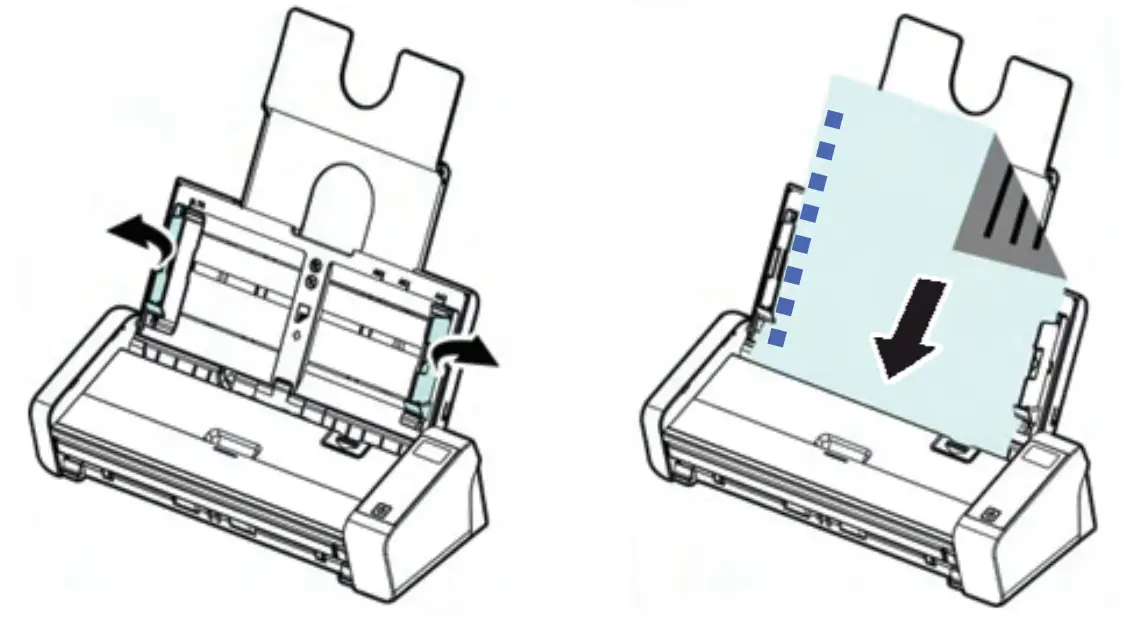 6.1 To avoid occasional multi-feeds or paper jams, please fan your documents by holding both ends of the documents and fanning them a few times. Align the top edges in a step-like pattern before feeding them into the scanner.