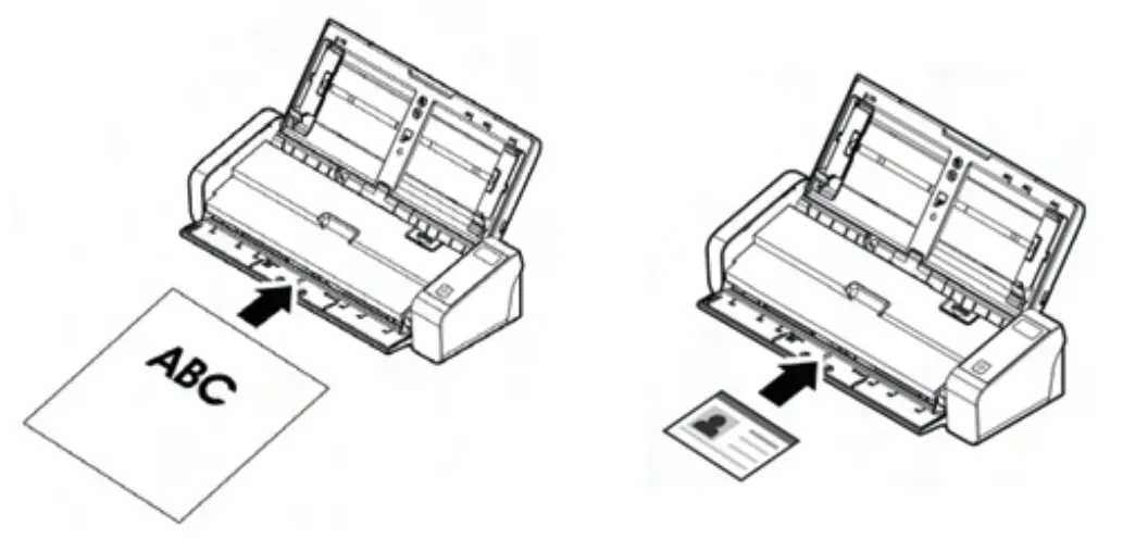 - 5.3 To scan a single page document or ID card with the rear input tray, load your single-page document face down, top edge first into the rear feed tray, align it to the paper size mark, and gently push document into the feed tray as indicated. After scanning, the document will be ejected to the same side of the input tray.