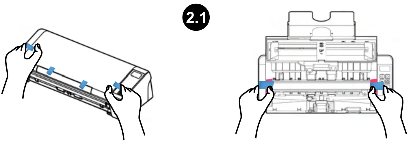 2.1 Remove all protective tapes and wrapping from the inside and outside the scanner