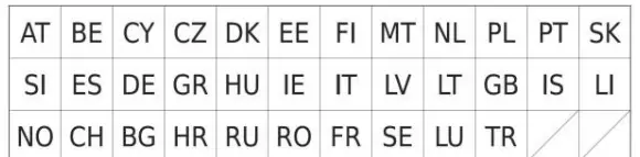 This device can be used in the following countries: