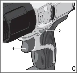 - To switch the tool on, press the switch (1). The tool speed depends on how far you press the switch.