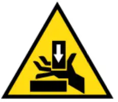Crush Hazard The product may have blades, edges or mechanical devices that can cause severe crush injury to fingers, limbs etc. Take due care when handling and using the product.