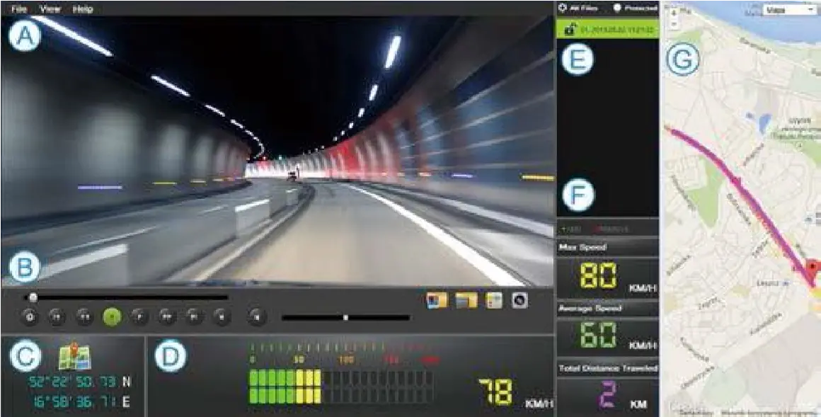 “Driving Recorder Player Software” is designed to play recorded videos along with displaying GPS data and driving routes on a computer.