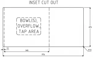 *Worktop cut out size: 976×476 corner radius 10mm, for .DXF cut flies please see www.abode.eu