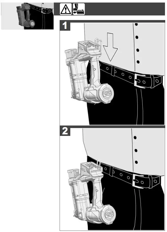 Do not select contact actuation mode when working on scaffolds, ladders or platforms where you may need to move your body position. You may unintentionally fire a nail by inadvertent activation of the workpiece contact while moving about if the contact actuation mode is selected. When moving positions, select full sequential activation or deactivate the product completely by removing the battery pack. This will reduce the potential for injury to yourself and others.