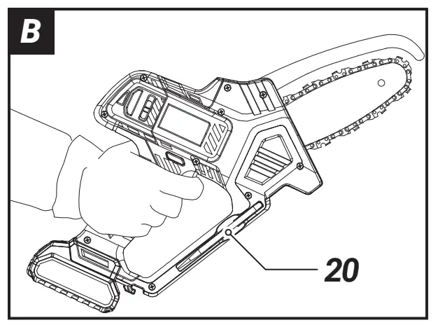 - Keep your hands away from the sawing area. Do not reach under the workpiece. Contact with the saw chain may result in injury.