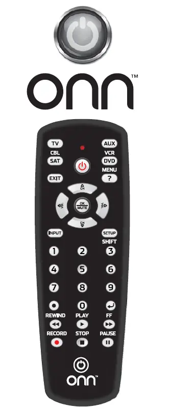 Congratulations on your purchase of the ONN Universal Remote. This remote is capable of operating thousands of audio/video devices including TVs, DVD players, cable, satellite receivers, and more!