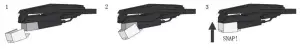 - Insert the needle with its front end at a downward angle and gently lift the front of the needle upward until it snaps into place.