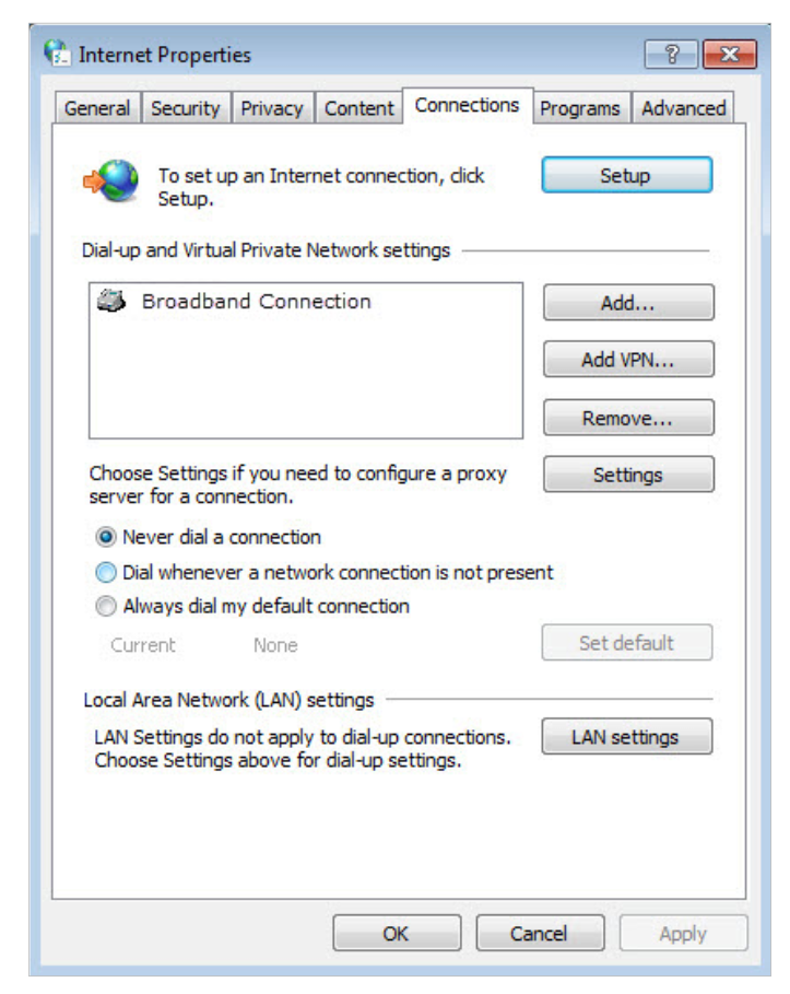 4 ) Click LAN settings, deselect the following three options and click OK;