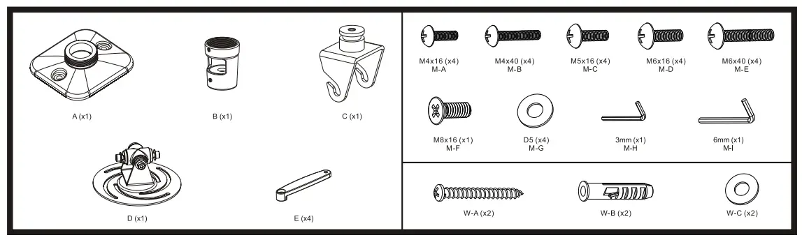 - Mounts must be attached as specified in assembly instructions. Improper installation may result in damage or serious personal injury.