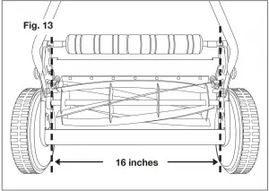 WARNING! The steel blades are extremely sharp. To avoid injury, do not touch the blades while making adjustments. Misalignment of the blades can occur, which often results from blades that are either too loose or too tight. This can cause an uneven cut or difficulty pushing the mower (Fig. 14).