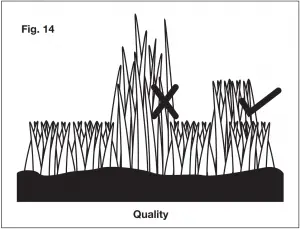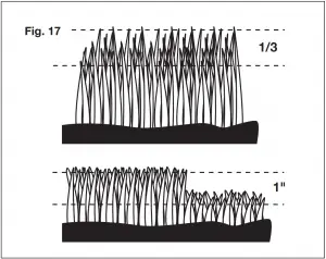 - Be guided by observing the lawn and taking care not to remove more than 1/3 of the total height of the turf at any mowing session and never more than 1 inch at a time (Fig. 17).