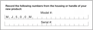 When contacting the company or reordering parts, you will need to provide the model and serial numbers of your product.