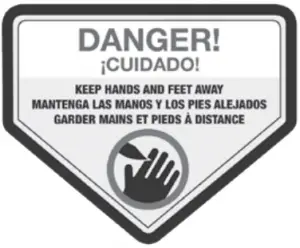 ![]() | DANGER! Sharp blades can sever fingers and toes. Keep away from the cutting area. | ![]() | DANGER! Cutting/dismemberment hazard – Keep hands away from the rotating blades. |