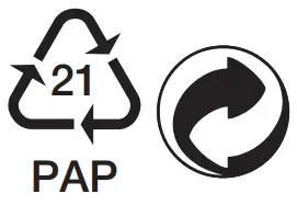 ![]() | Dispose of packaging in an environmentally friendly manner |
