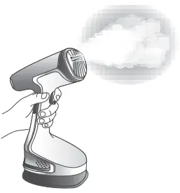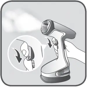 - Press the steam button with the steam brush facing away from you holding it in a vertical position.