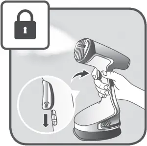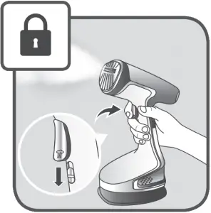- Put the steam trigger in the locked position thanks to the locker.