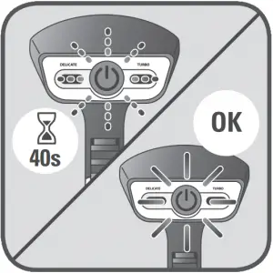 - Wait until the light stops flashing (approximately 40 seconds). When the light is steady the appliance is ready to use.