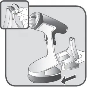 - For continuous steam, lock the steam trigger by pushing the locker switch down. To release it, push it up.