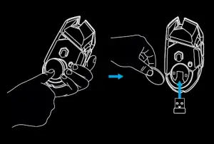 - Lower weight and receiver storage door (bottom of mouse)