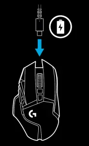 Plug your mouse in via the provided USB charging cable when the battery is low. G502 LIGHTSPEED is also compatible with the Logitech G POWERPLAY wireless charging system, sold separately.