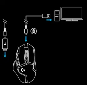 –– G502 LIGHTSPEED has a wireless range of up to 10 meters. To ensure optimal performance in noisy wireless environments, and to keep the charging cable easily accessible,