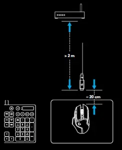 it is recommended to keep the receiver within 20 cm of the mouse.