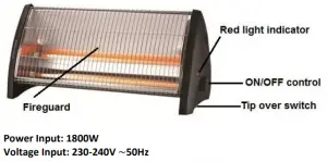- The safety fireguard of this heater is intended to prevent direct access to heating elements and must be in place when the heater is in use.