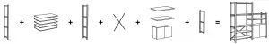 Start by thinking about what you want to store and the space you have available. For the first section you need two side units, shelves and a cross-brace. Extend sideways, either at the same height or a different one. For each additional section, you need just one side unit, which you link to the storage solution with shelves or a cabinet. To ensure stability we recommend that you fit a cross-brace to every other section.
