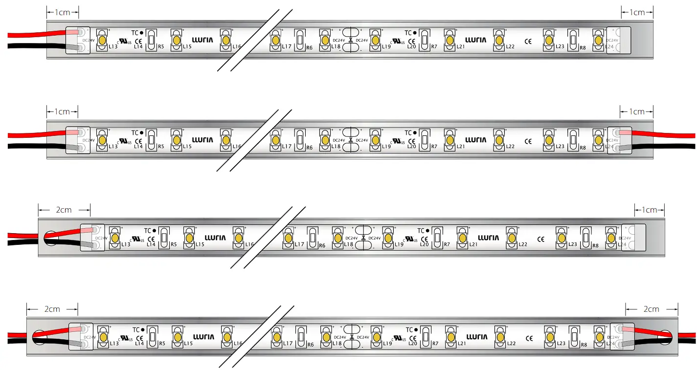 Minimum distance that should be left at the ends, both sides, between LED strip and profile.
